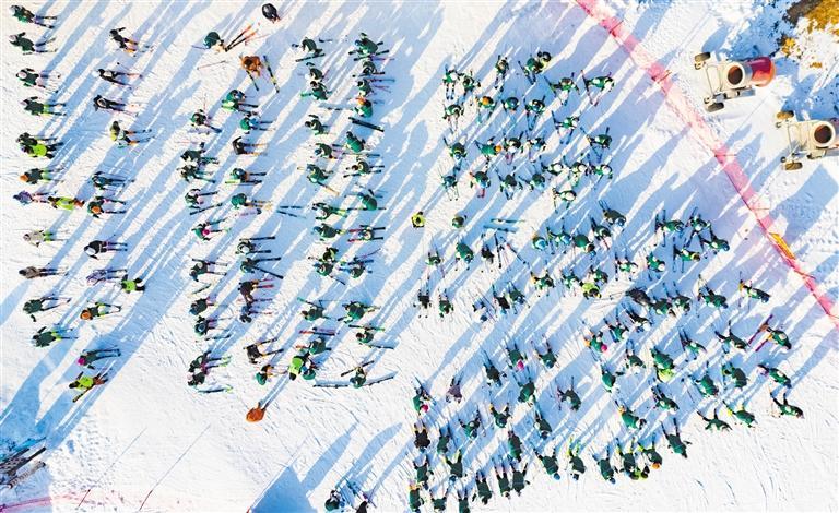 12月18日,张家口市万全区林语山谷滑雪场,学生在进行滑雪培训。张家口捏续举办“冰雪大篷车”百县千乡巡回、万名学生上冰雪、冰雪嘉年华等品牌活动,年均开展人人性冰雪赛事600余场。