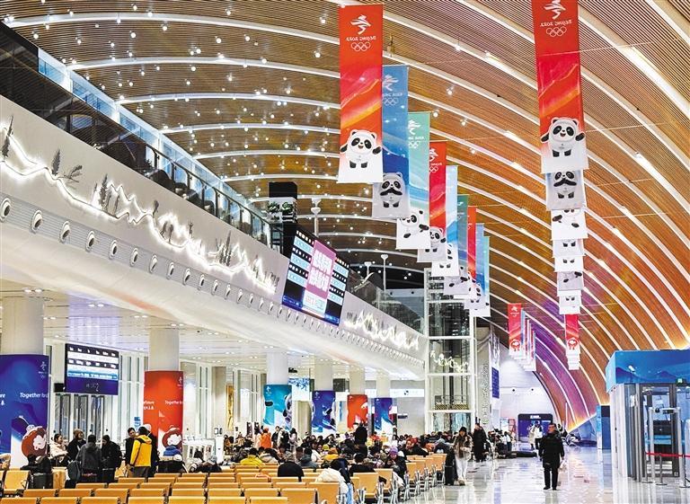 12月19日拍摄的京张高铁太子城站候车大厅。为肤浅滑雪怜爱者出行,铁路部门推出“雪具便利行”以及雪具托运等劳动,并通过公交、雪场接驳车达成“家门到雪场”无缝连续。